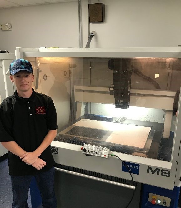 “Nick Holbrook comes to us from the Lake Technical College CNC Production Specialist Program. Our second hire from a Lake Technical Program, Nick runs our Datron CNC machines. After completing the 6 month, 600 hour program at the Lake Tech Center for Advanced Manufacturing, Nick was ready to jump right in to the Data Graphics workforce. Our customers range from medical, aerospace, defense and commercial companies. This type of customer base requires tight tolerances and product that is exact to the engineered drawing. From what we see in Nick’s ability and potential, Lake Technical College prepared Nick for the workforce. We are excited to add Nick to our team here at Data Graphics and are thankful for Lake Technical College.”