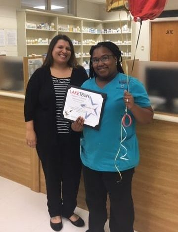 month received a certificate of achievement, a balloon arrangement, and lunch with the Executive Director, Dr.