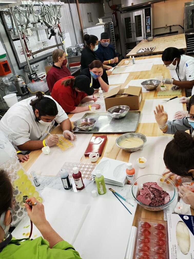 Guest Chef Anna Burnett spent two days with the Baking and Pastry Arts students teaching them the fine art of chocolates! Creativity and patience = beautiful creations!