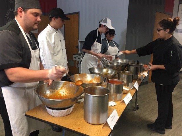 Students in the Culinary program were practicing for SkillsUSA competition this week. They were also learning how to make sweetened and dried edible flowers. On Wednesday, it was “Wing Day” as the students prepared chicken wings and five different homemade sauces for lunch.