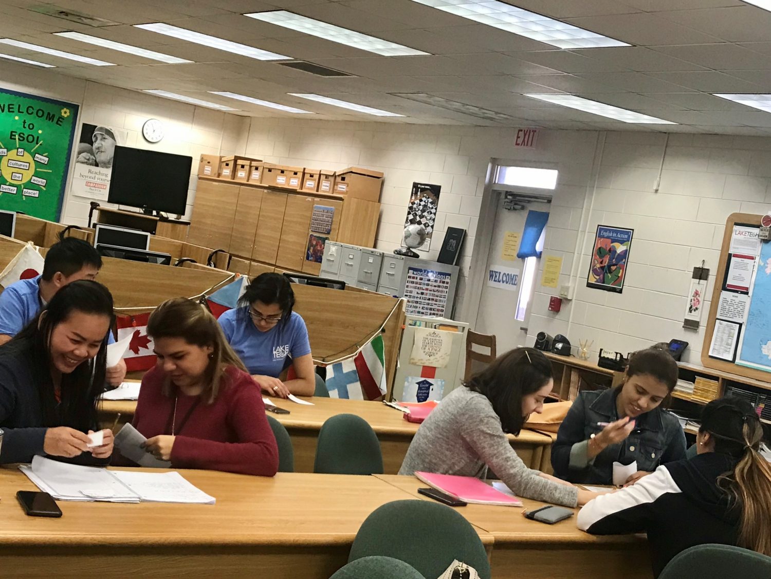 We are halfway through the spring semester, and in our ESOL classroom, our students are getting used to communicating in English, and having fun with it, too! We do this daily in group activities and by engaging our students individually. Our conversational activities are both scripted and unscripted. It is wonderful to see how friendships have formed in the classroom and to overhear our students speaking to each other in English on their own. In addition to lots of speaking opportunities, out students have a weekly or bi-weekly grammar skill, a reading series, a shared set of classroom books, a weekly writing prompt, as well as special projects throughout the semester. We also incorporate technology through lessons twice weekly on Schoology, which our students can also access from home. In addition to that, we have a weekly Job Skills/Career Development class, and a Civics class as well. It’s wonderful to see how English is not just a language, but a commonality through which friendships are formed by people from all over the world.