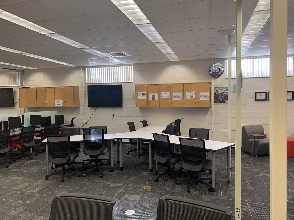 The computer lab room gets hot from equipment being on and body temperatures. A couple of students decided to get creative with technology and came up with an idea to cool off. They took the mini drones that are in the classroom and flew them over each other’s heads. It was like standing under an electric fan with the amount of air they put out. The drones are circled in the picture!