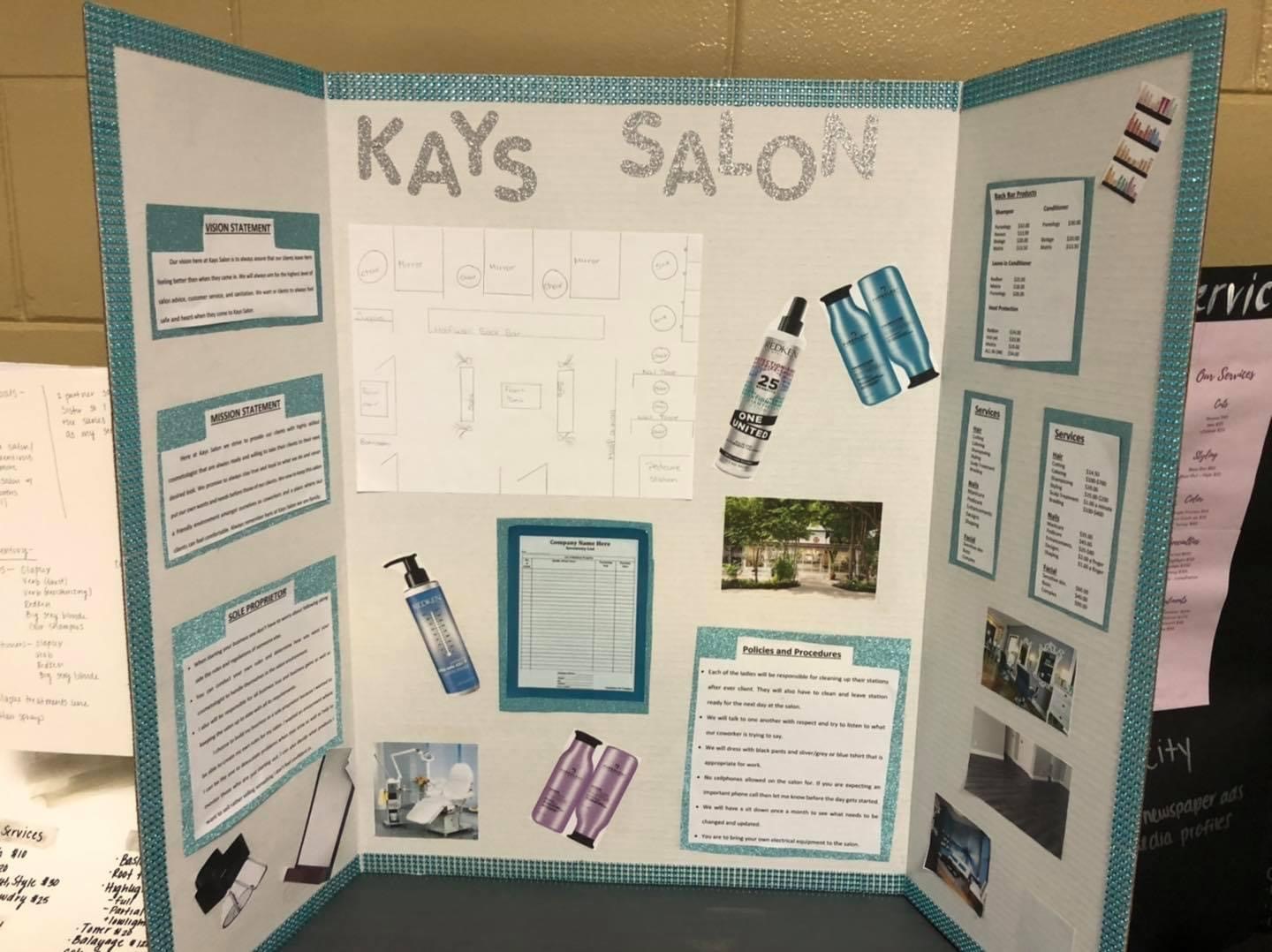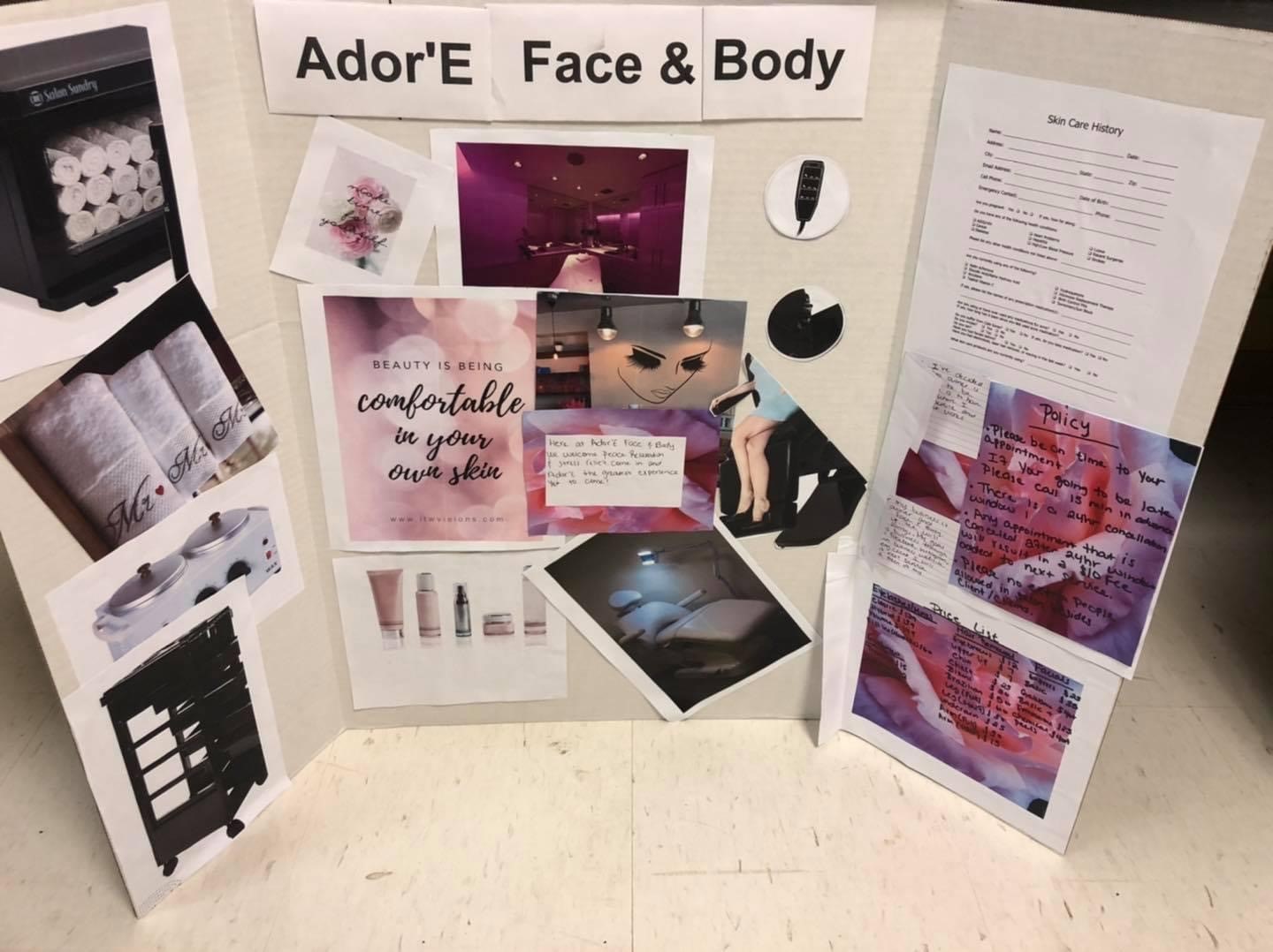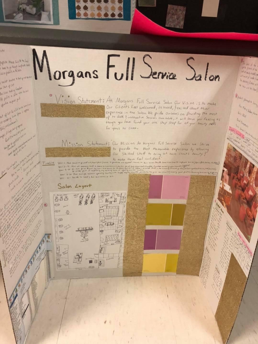 The Cosmetology students created their own businesses as part of the entrepreneurship competencies in their program. They wrote business and marketing plans, designed their salons, determined pricing structures, and then made oral presentations to the class.