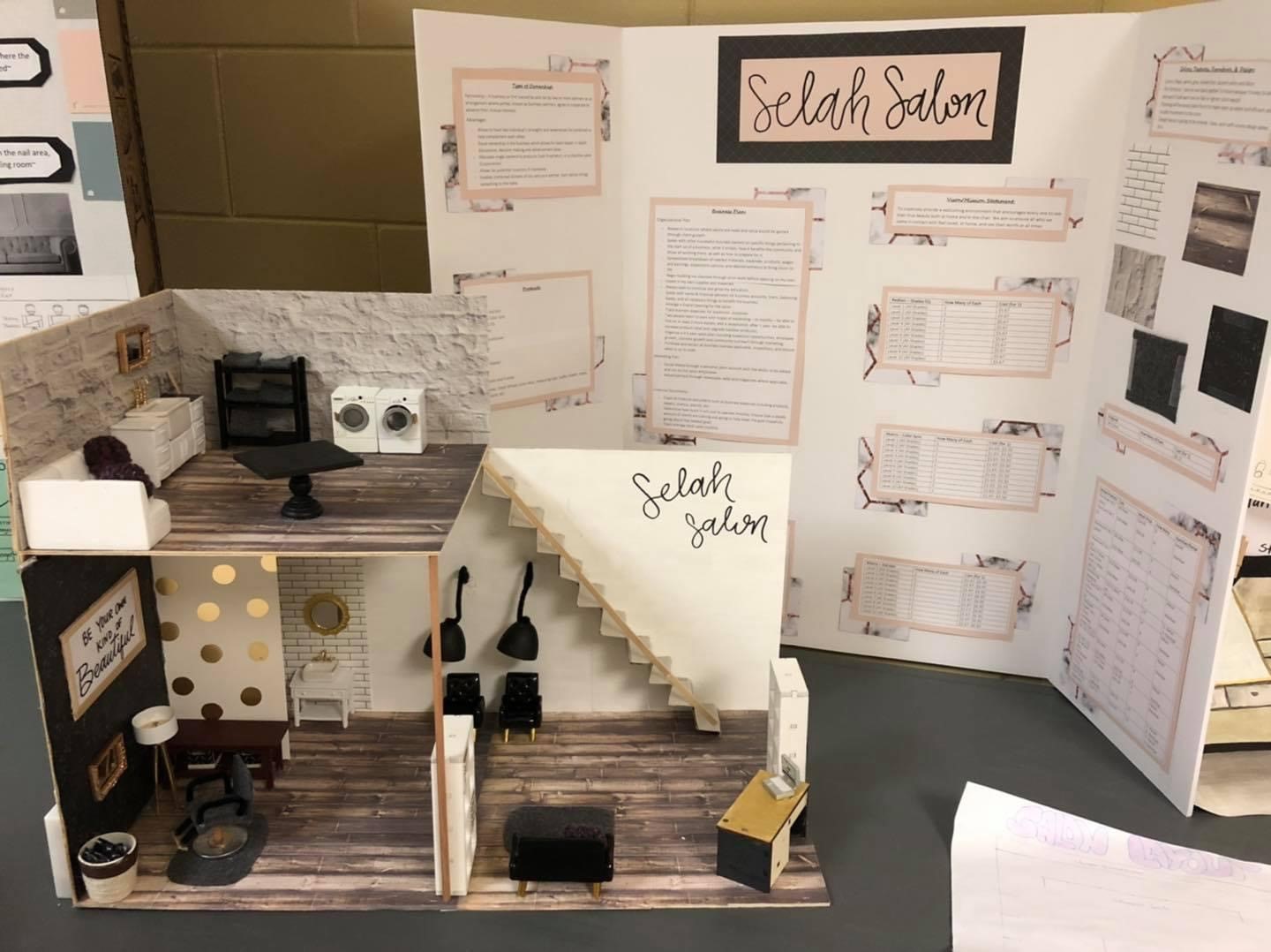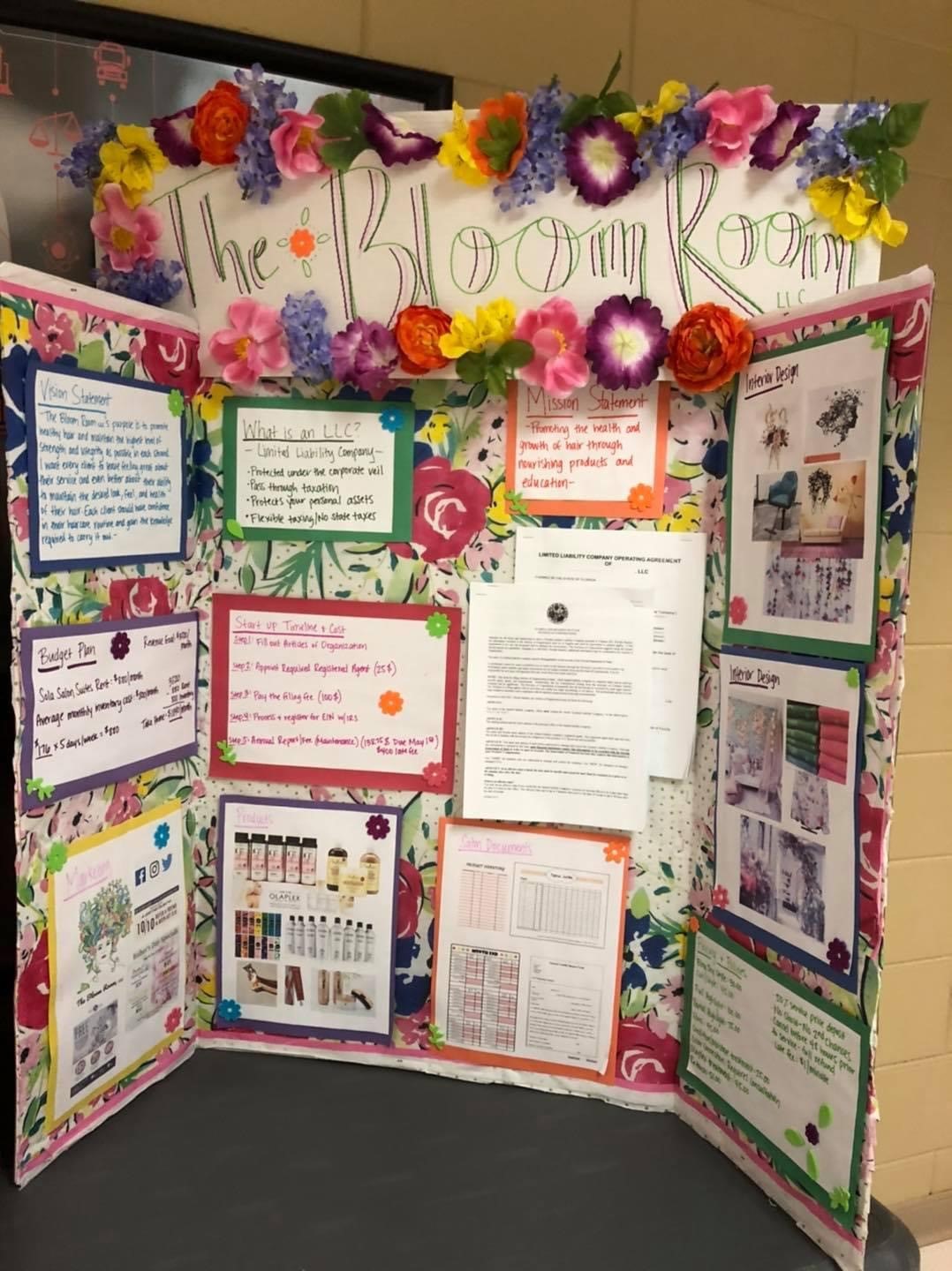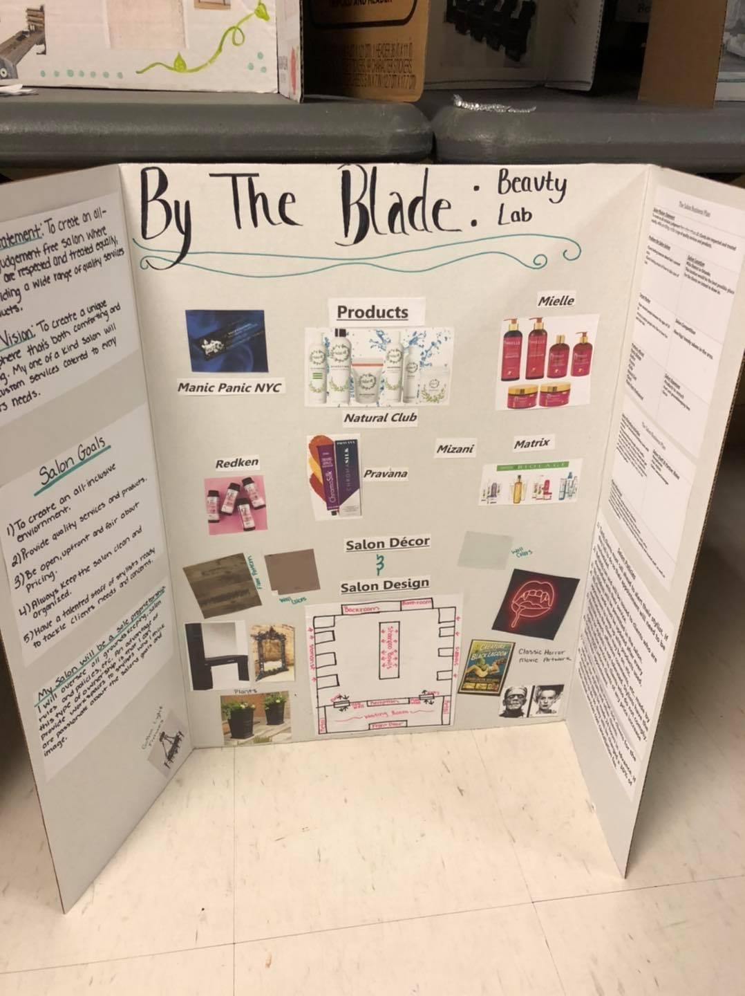 The Cosmetology students created their own businesses as part of the entrepreneurship competencies in their program. They wrote business and marketing plans, designed their salons, determined pricing structures, and then made oral presentations to the class.