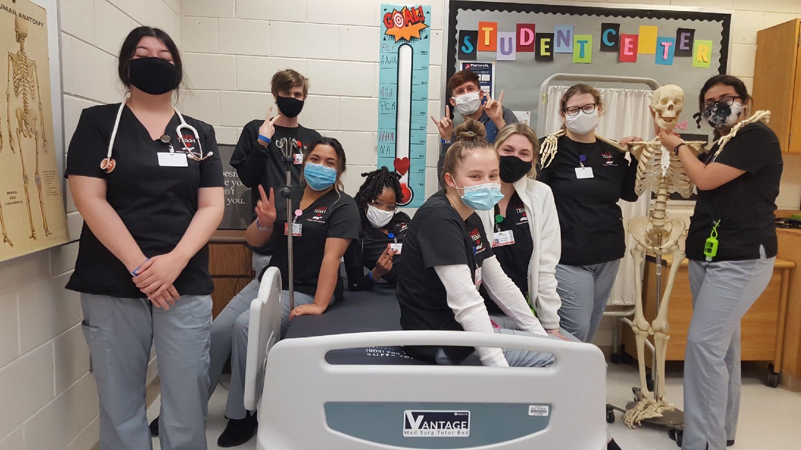 The current Patient Care Technician students practiced maintaining a sterile field during surgery.