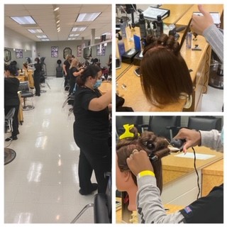 This week our Day Seniors practiced their blow-dry skills as well as barrel curls. They then learned how a great blow-dry followed with a barrel curl set can give them lots of volume as well as a great foundation for their updo’s! They really outdid themselves. Later in the week our “Super Seniors” enjoyed some freestyle time to practice razor cutting, foil highlighting as well as braids! Braids are the trend these days.