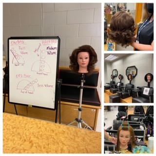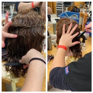 The seniors learned their 180 degree haircut (long layers) as well as how to do a proper roller-set. They loved the 180 haircut and said it was one of their favorite haircuts to learn (45 degree haircut was their second favorite). The roller-set on the other hand is very “retro” and they were not so excited about it. But once they started working on it they did have fun and there were plenty of giggles and talk about “grandma hair”.