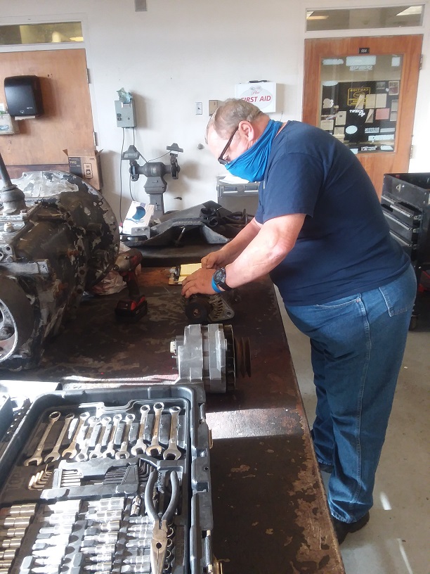 The students are wearing masks and staying safe! This week, they began disassembling alternators and starters along with rebuilding diesel engines and torquing all the bolts.