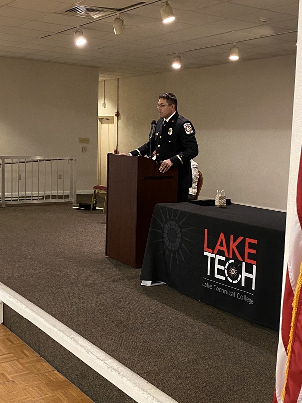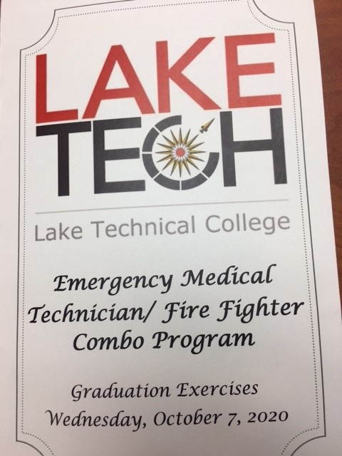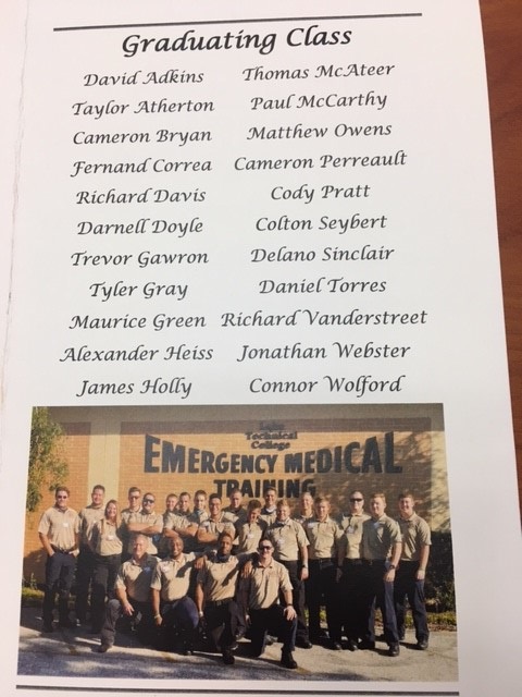 Graduation for the Fire Fighting/EMT was held on October 7 at the Eustis Community Center. Captain Sean Sacco from the Clermont Fire Department was the graduation speaker. Recruit Richard Vanderstreet earned the highest GPA award and is pictured with Chief Ron Williams.