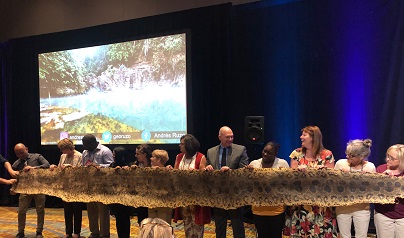 Andres Ruzo, a geothermal scientist, conservationist, educator, host, spokesperson, and science communicator was our Keynote speaker. He is a National Geographic Explorer and brought with him the skin of an Anaconda snake that was over 20 feet long. Check out Pam Netherton who had the opportunity to hold part of it while it was on display!