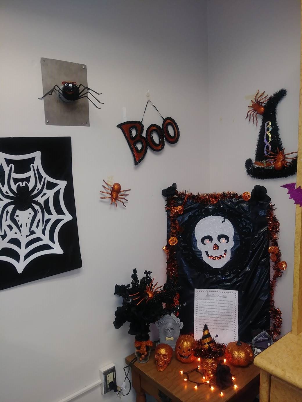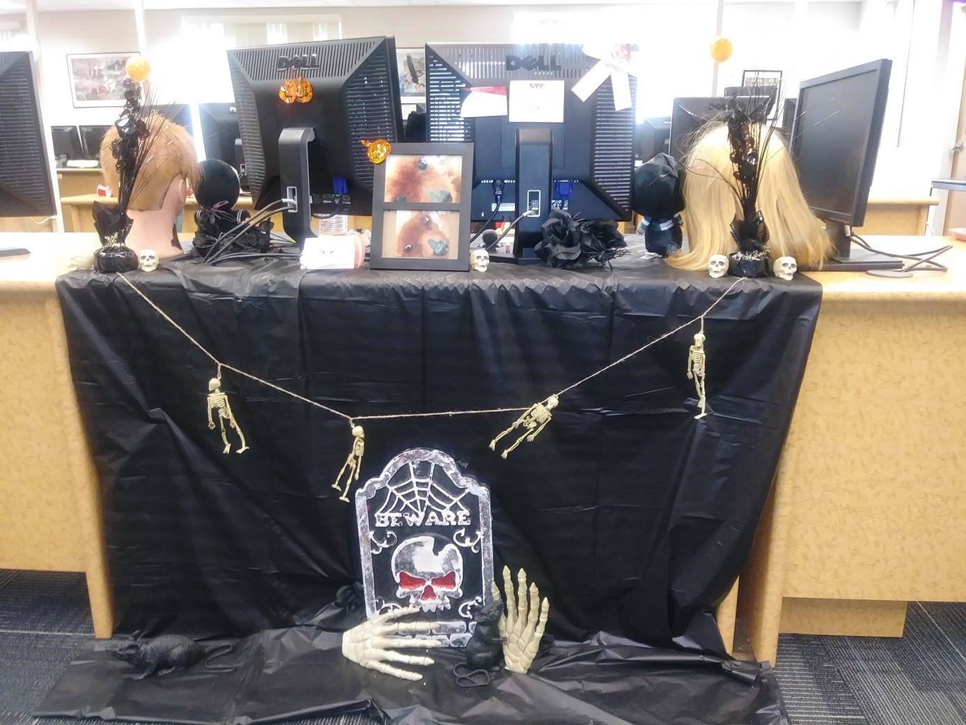 This week marks the beginning of October; our Accounting and AOS classes started to show our fall spirit! Classmates started the month off by enhancing their desks with props and decorations for a Halloween theme. The classroom and desks came out looking spook-tacular, showing our students creativity and putting us in the spooky spirit. In addition to decorating our classroom, the students are coming together and decisions are being made about the Fall Festival booth and our class scarecrow.