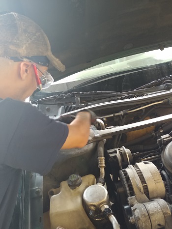 The student pictured is working on the removal and replacement of a brake master cylinder as part of one of the competencies required to complete the automotive brakes course. In the process, he is learning that every vehicle is different and takes a different procedure to get to the component that is in need of replacement. Sometimes the students learn that the removal of other components is necessary in order to get to the part being replaced and that’s exactly what the pictures show him doing.