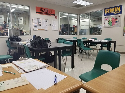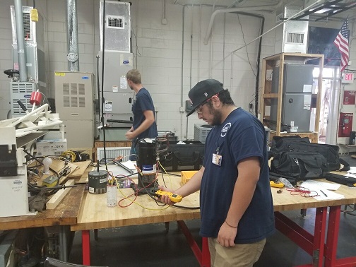 Instructor Steve Bagg stresses the theory portion of the program so students can understand the laws of thermodynamics, safety management, fundamentals of electricity, and diagnostic techniques. Students spend time in the classroom learning and then move on to the lab to apply what they have learned. An empty classroom means a full lab of students putting their knowledge to the test!