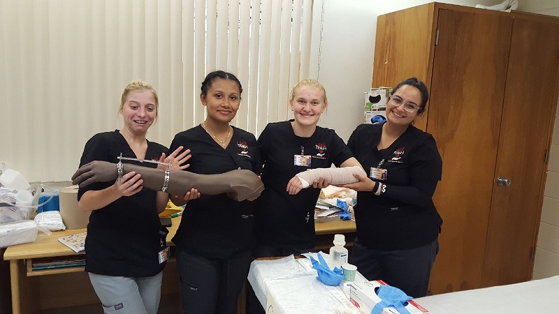Students in the Patient Care Technician program learned a variety of new skills over the past couple of weeks. They practiced oxygen therapy, cast/pin care, patient assessment, and skin traction.
