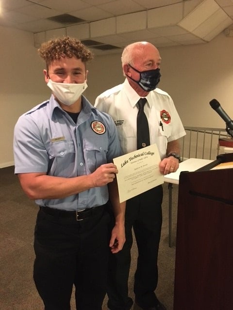 Sheriff Grinnell and the Lake County Sheriff’s Charities, Inc. presented a full scholarship to Simon Gracey so he can enter the Firefighter/EMT Combo program at the Institute of Public Safety in February.