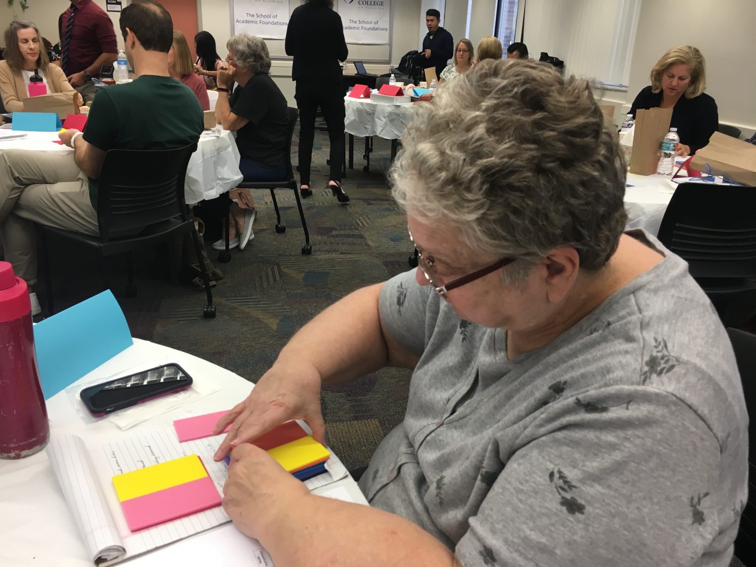 Adult Education instructors, Mrs. Girard and Mrs. Netherton, went to a workshop about using Close Reading Strategies for all subjects, but in particular math since most of the questions on the TABE and GED tests are word problems. Ron Cruz, from the Institute for the Professional Development of Adult Educators (IPDAE), is an expert in the field of teaching math. He demonstrated many strategies for helping students grasp math concepts. We practiced with fraction squares, seen in the pictures here, and several others, including math charades. It was a fun and helpful workshop that we will be sharing with our coworkers. The students have already used the fraction squares, and we intend on trying the math charades strategy soon.