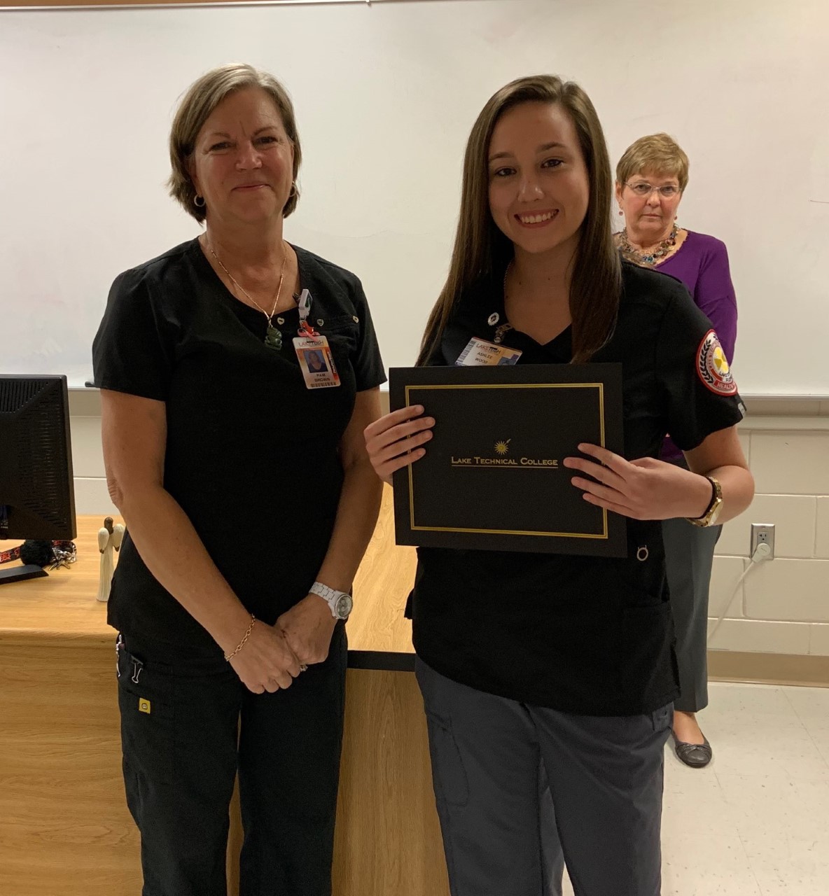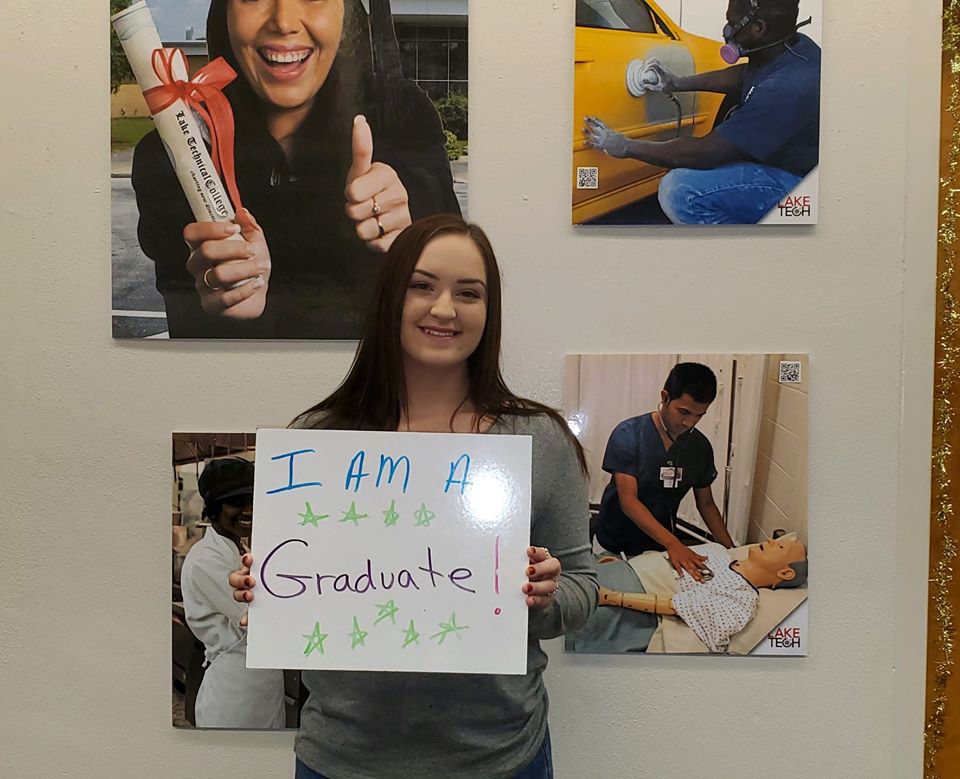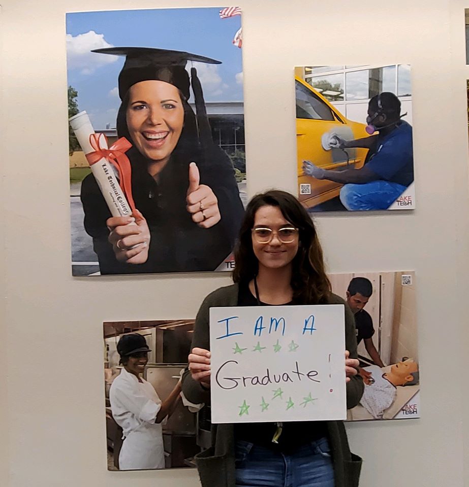 Speaking of completion, student leaders Courtney Robbins, LaQuinta Jones, and Kayleigh Tussey concluded their final week at Lake Tech’s student kiosk. Stay tuned in to find out who your next student leaders are and for exciting news of new locations and merchandise for this student run bookstore!