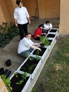 The Culinary students have begun growing herbs and vegetables! An outdoor planter box was built by the construction students under the supervision of instructor AJ Bryant and then painted by Roy Peters, maintenance mechanic. True teamwork at Lake Tech!