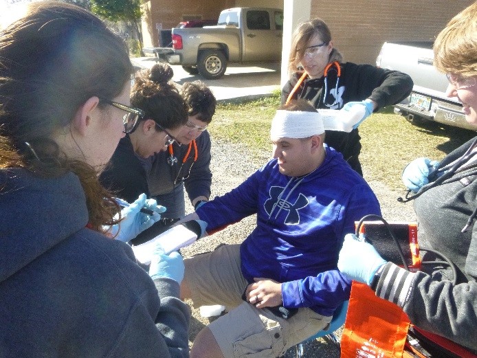 Emergency Medical Technician – Saturday, January 6th was Mock Trauma Day for the evening EMT program. This day is the highlight of the Trauma Module. Students participated in team relays and competed in timed events such as splinting, patient packaging, and bandaging. Students also participated in simulated trauma scenarios in which they assess, treat, stabilize and move the “patient” involved in anything from falls, to vehicle accidents.