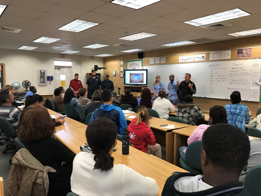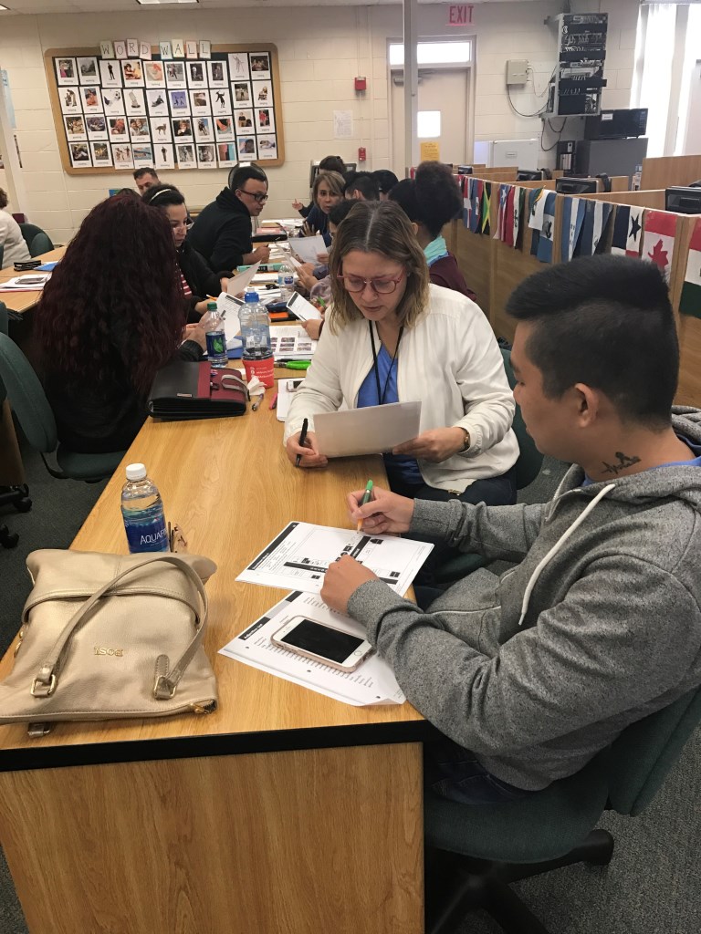 ESOL – Main Campus – Maps and Modals! That’s what we’ve been studying in Advanced English this week! More specifically, the practice of giving directions using a diagram of city blocks while participating in lots of fun, interactive, partner-driven activities. Moving from conversational skills to grammatical, it’s been a week of “would, could, and should” with practice, application, and review of the modal auxiliary verbs. Our Beginning English students are learning several verb tenses and enjoying our interactive Oxford Picture Dictionary program on the computer. All of our students enjoy many opportunities for listening, speaking, reading, and writing English daily along with weekly time spent on Civics and Job Skills. We even had the Automotive Department from right here at Lake Tech visit our classroom and generate much enthusiasm among our students about their program and the many that are offered here.
