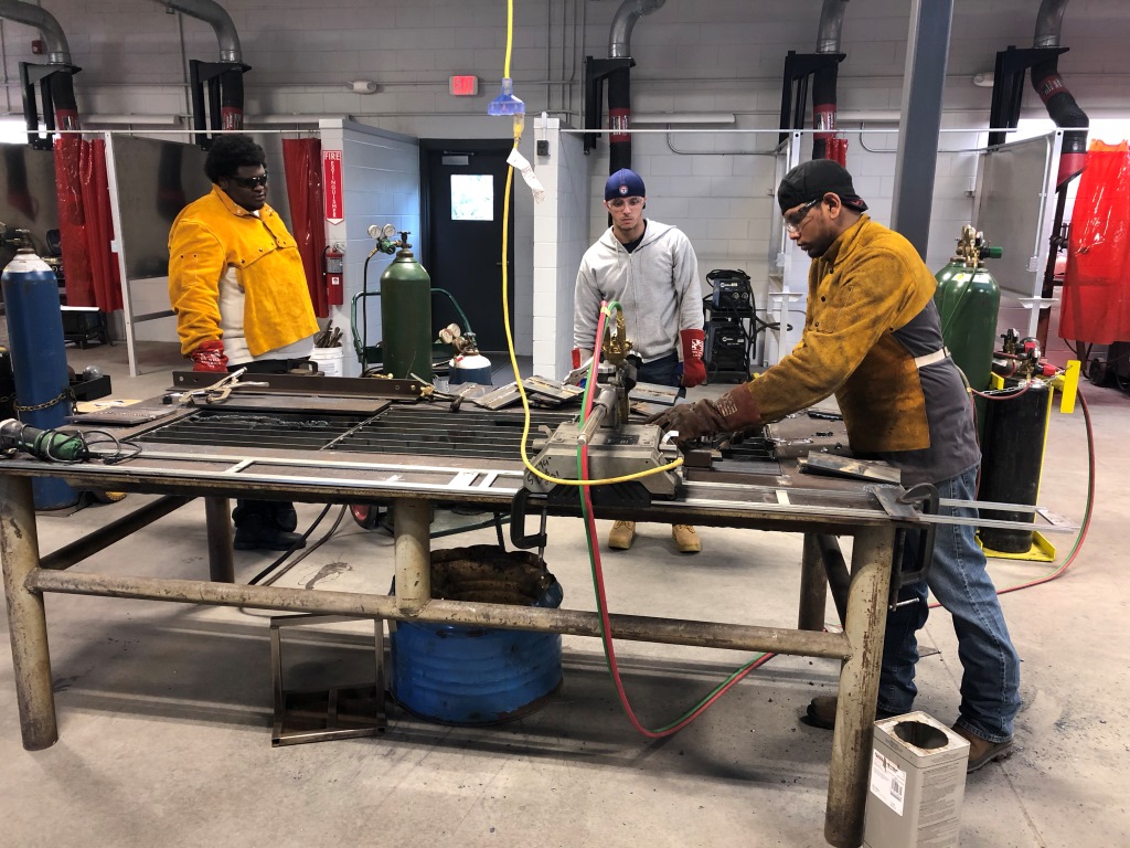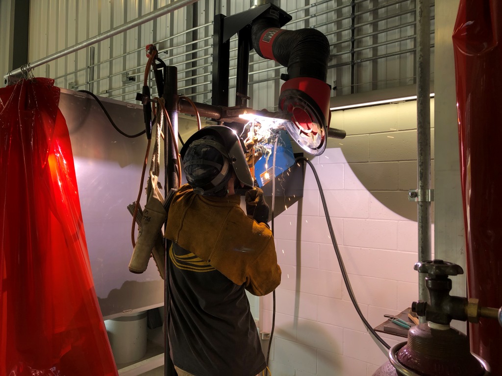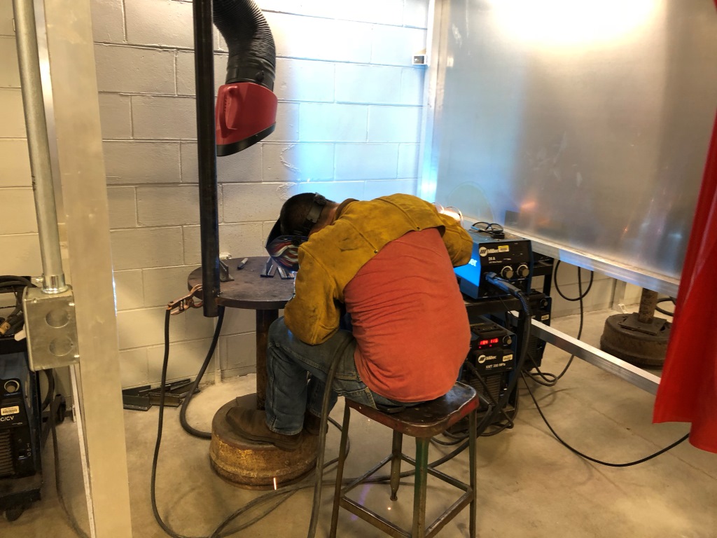 Welding Technology – Work is well underway in the new building. All welding machines have power thanks to electrician Evan Sartain. Instructor Bob Sherwood and the welding students designed and fabricated brackets so the welding machines could be moved from the floor onto the way in order to save space! Genius!