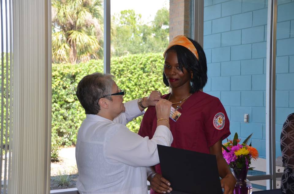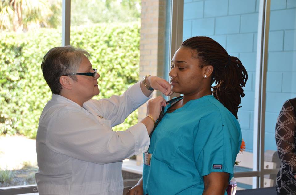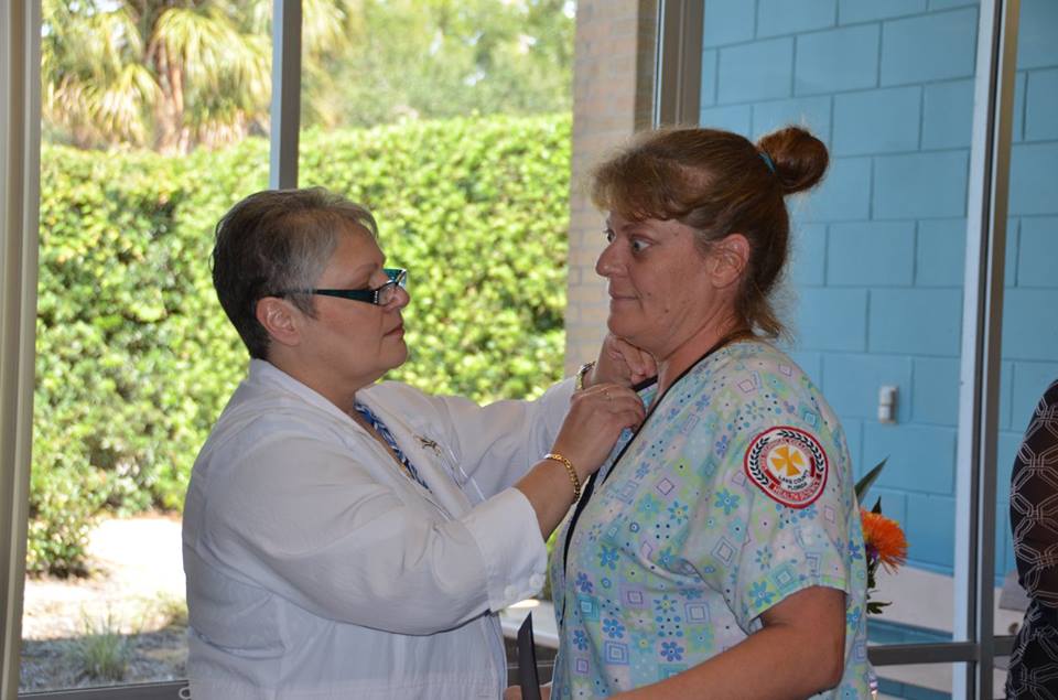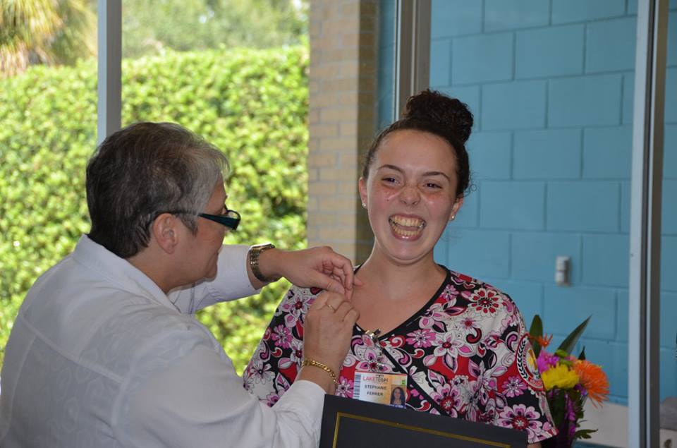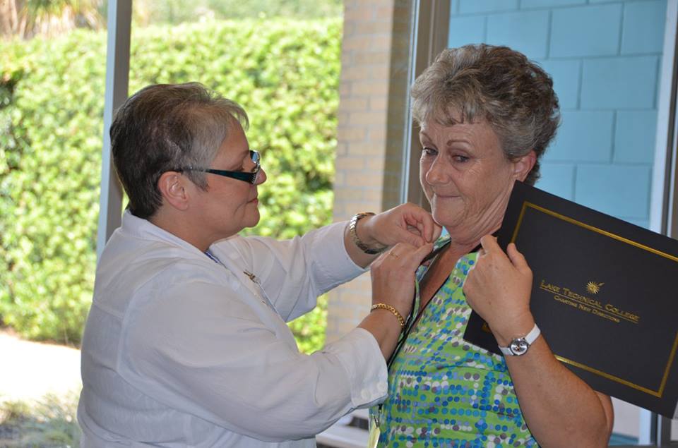 Medical Assisting – Many of the Lake Tech Medical Assisting students have the opportunity to complete their externships at the Villages Health. Current student Kendra Rosser was practicing giving an injection to a Lake Tech Alum who now works at the Villages Health full-time.