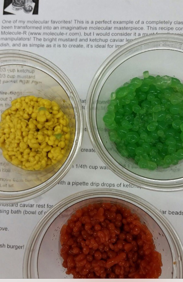 Commercial Foods & Culinary Arts – Culinary students have been venturing into molecular gastronomy. We made our vegetarian burger with faux ketchup, mustard and pickle caviar! Keep looking for our incredible lunch specials!