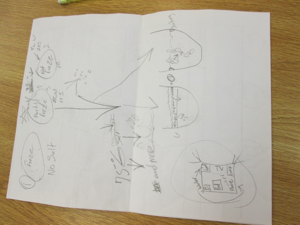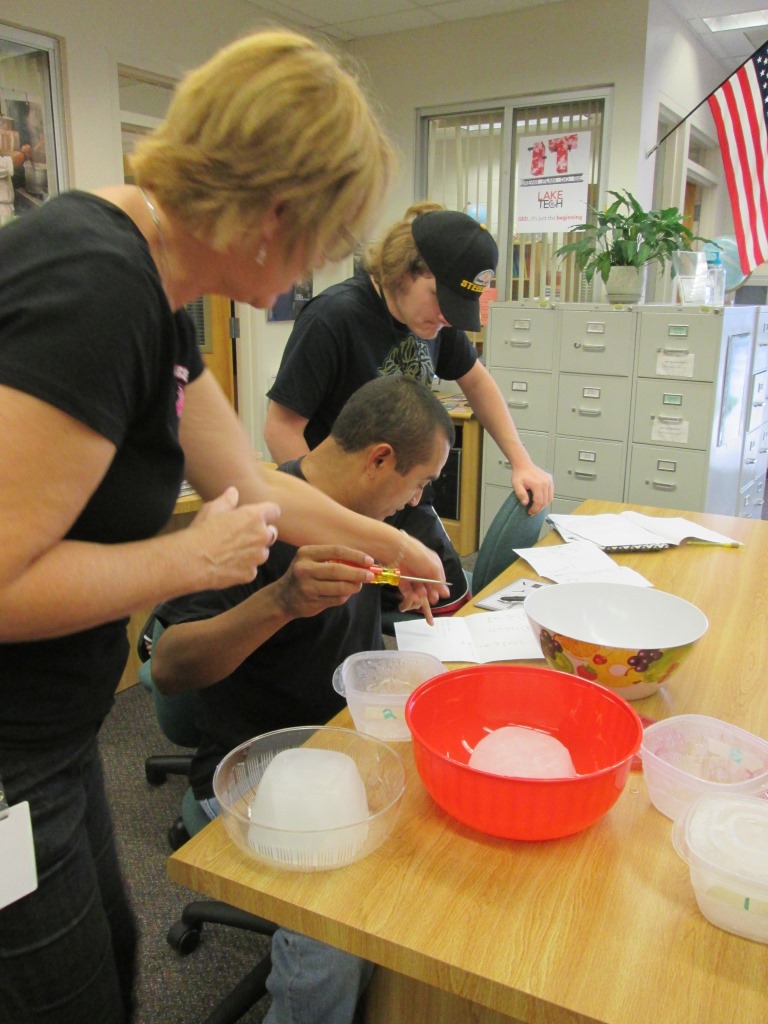 GED students participated in lessons and discussions about the Scientific Method. Then Mrs. Netherton had students apply what they learned by working together in pairs or small groups and coming up with an experiment. Each group had to record the experiment’s hypothesis, materials, procedures, and independent/dependent/control variables. One pair of students came up with a question, “Why doesn’t the ocean freeze?” and the pair researched how to make this into an experiment. Over a two day period, the entire group tried it. The hypothesis turned out to be correct; although, we as a class want to try it again using other control variables. One of the students was so excited about his research that he taught the other students more details about the subject!