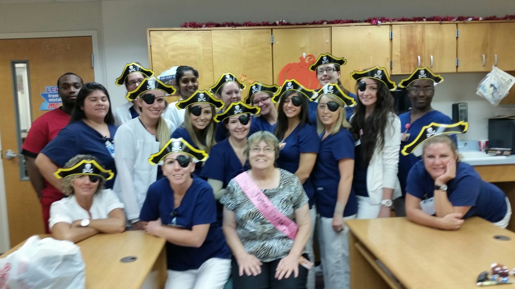 Practical Nursing – Last week, Instructor Patty Moyerman’s students surprised her with a pirate-themed “Welcome Back/Tumor Free” party. Patty recently underwent surgery, has recovered and has returned to her students. She commented, “Is it any wonder I walk around school bragging about how wonderful my students are? How lucky am I.”
