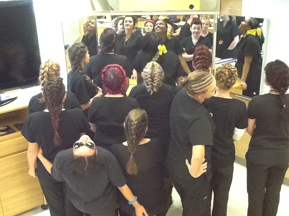Cosmetology – The Cosmetology students learning and practicing all types of fashion braids.