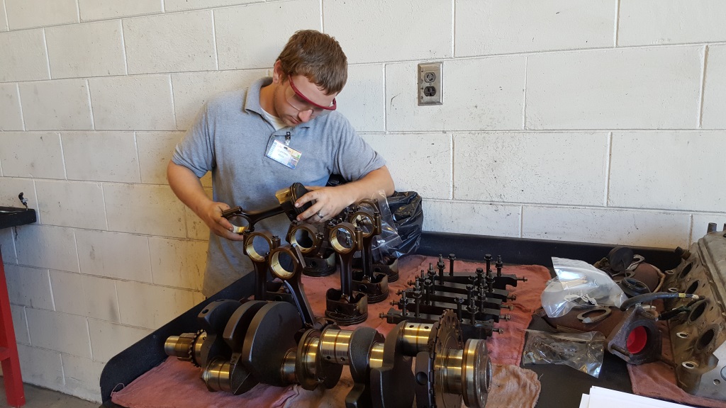 Auto Service Technology – This week, the Auto Service Technology students have been working hard on improving their engine repair skills from engine removal, disassembly and cleaning. In addition, they worked on creating estimates by looking up prices and the times allowed for engine building so they are definitely learning all the elements of building an engine.
