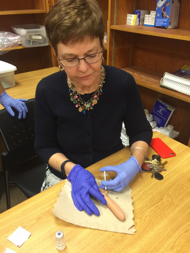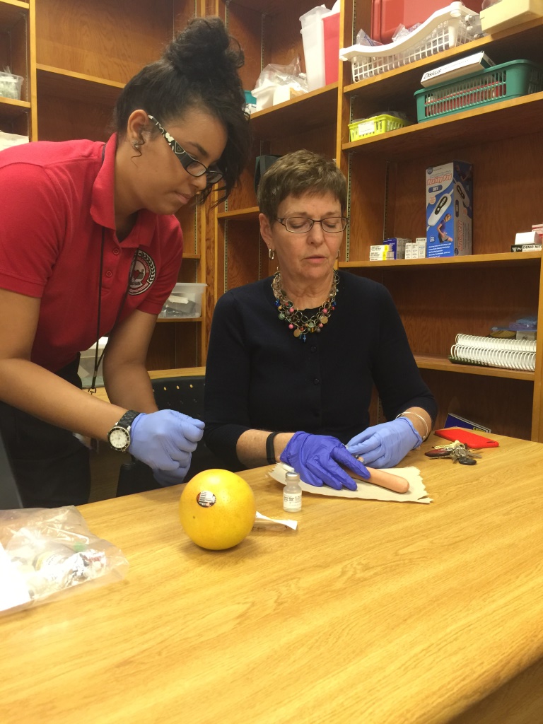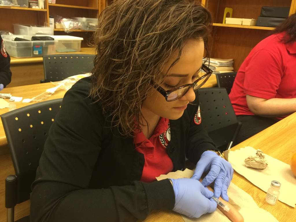 Medical Assisting – In the latest edition of “Teach the Director a Thing or Two,” Medical Assisting students along with instructor Beth Thornton taught a lesson on how to give an injection. Instead of a real patient, Dr. Culpepper had the opportunity to practice on a hot dog (thankfully)!
