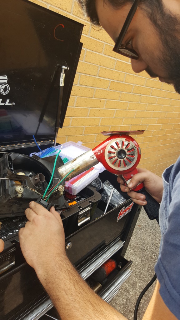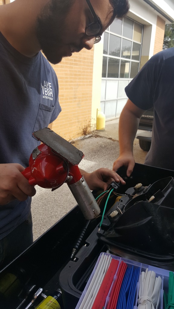 Auto Service Technology (AST) – AST welcomed a new student this week while the engine building student team are almost done putting their engines back together. The electrical students learned the importance of a good electrical connection they also learned how to solder and insulate wiring and the different ways of doing it. In the pictures, one of our students insulating a small headlight wire harness using one of the methods previously learned.