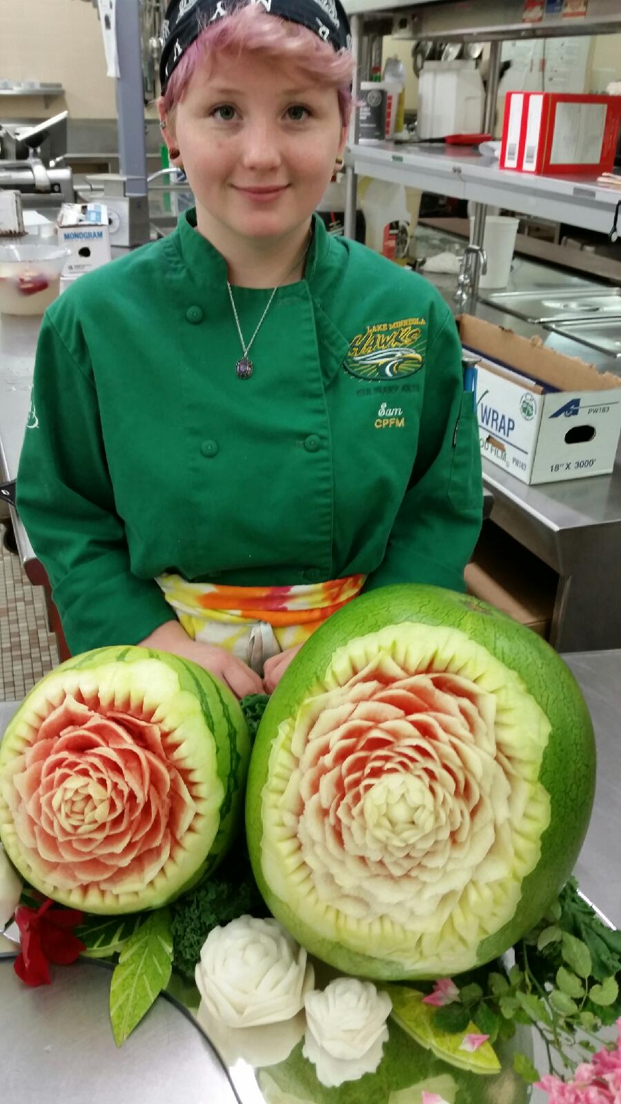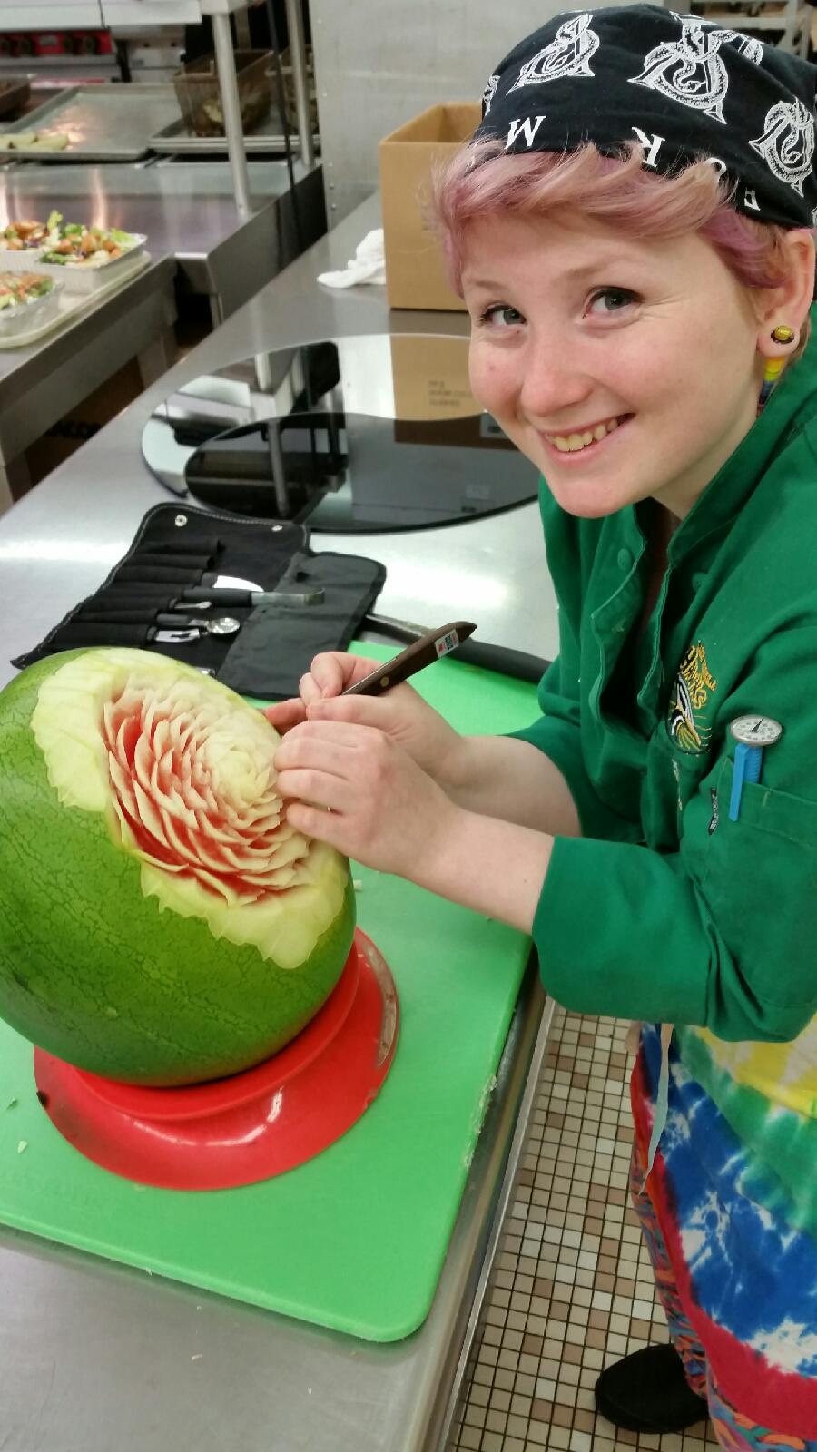 Commercial Foods and Culinary Arts – Students Samantah Shepler and Shannon Wallman prepared fruit carvings for display at the Villages High School College and Career Fair.