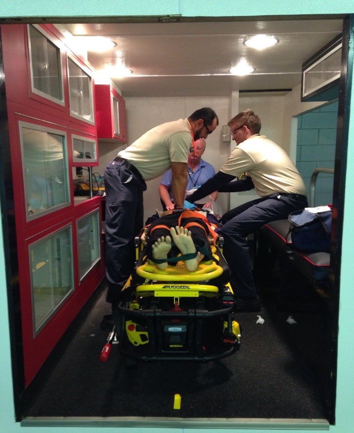 EMS Programs – The EMT students will soon begin the field internship component of the program. In preparation for this experience, the students utilize the simulation ambulance to practice a number of medical and trauma patient care scenarios.