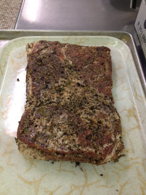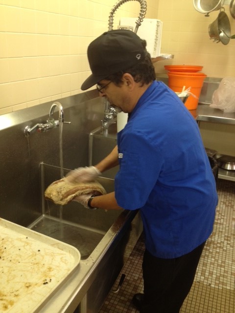 Other students learned how to support the specific dietary needs of our customers. Jmoi Peters made fresh vegetarian pizza, and it was a huge success! Carlos Colon spent some time learning about the brining and curing process that makes bacon & pancetta (that’s to keep our meat lovers happy!)