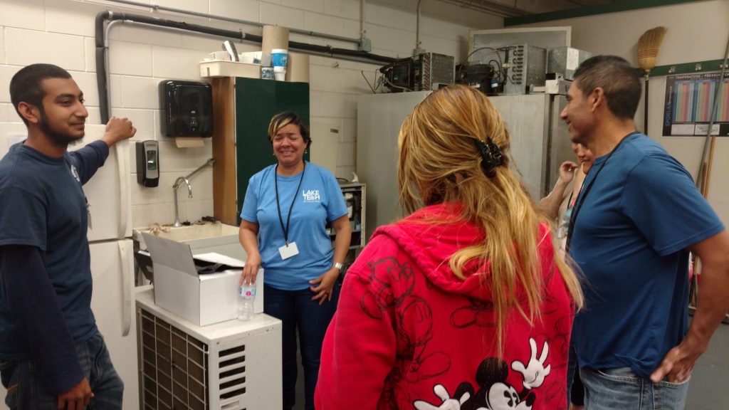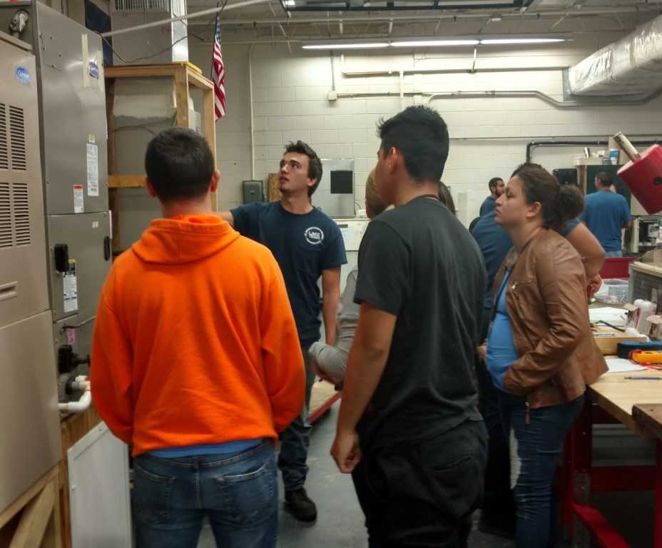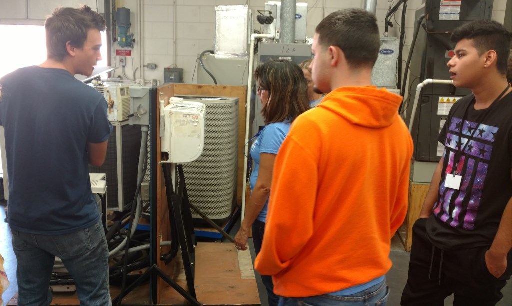 ESOL students visited the HVAC program as part of their work skill curriculum. HVAC students were paired with ESOL students who asked questions about the program requirements. It was a great opportunity for all students to interact, get to see other students, and programs. Work and career skills were demonstrated and enhanced through the collaborative question and answer session. Thanks to Mr. Bagg and his class for welcoming and hosting the ESOL students’ visit.