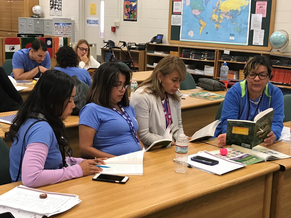 GED – ABE reading, students have been hard at work finding evidence and distinguishing between fact, opinion, credible, and accurate data.  Writing prompts have varied in topic and length, and now students are ready to write an argumentative response. Ms. Bryant came by and interacted with students, encouraging students to defend their evidence.