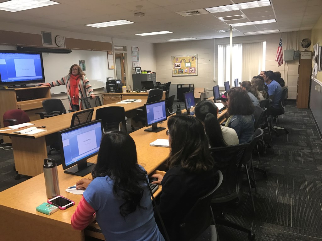 Cathy Lunday from the WT Bland Mount Dora Public Library visited to let us know about the numerous classes, programs, and events at the library that are FREE to anyone who has a library card. She even got each student started on the process of getting his/her own card, and we plan to follow up through on a field trip to the library next month. But for now, we didn’t venture far to get some excellent instruction on how to do a Power Point by our very own Career and Technology Specialist, Sonya Rosenglick. Our advanced students are already in the process of utilizing this skill for an assigned presentation. Interviews of staff throughout the school by our advanced students are already underway, and we have enjoyed learning about the friendly faces here at Lake Tech. Our beginning students are already studying the past progressive verb tense, and even had the opportunity to write their own commercials for an assignment.