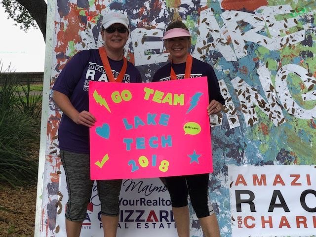 Lake Tech participated in the Amazing Race for Charity again this year in two different ways. First, The Center for Advanced Manufacturing was one of the obstacle stops for the 600 racers. Second, Team Lake Tech, made up of Melissa Stephan and DeAnna Thomas, participated as runners in the race. Morgan Black coordinated the Lake Tech portion of the race and set up a table at the Expo and Race Packet Pickup held at the YMCA.