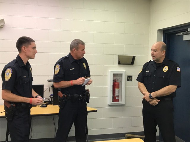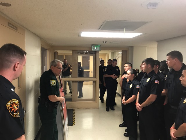Mr. Vitale from Clermont Police Department shared Below-100 videos, which teach about officer safety. Officer Stone, also from Clermont Police Department, instructed the class on Chapter 5 – Fundamentals of Patrol through PowerPoint and scenarios. The Day Law Class was able to tour the Lake County Detention Center and also sit in on traffic court at the Court House.