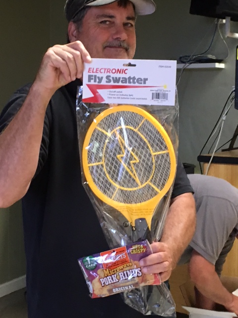 Auto Collision instructor David Beliveau surprised Auto Service Technology instructor Mark McKinney with happiness at the last faculty/staff meeting! In keeping with the idea of “Fill the Bucket of Others,” David gave Mark some microwave pork rinds and an electronic fly swatter for those pesky mosquitoes that show up in his office each year.