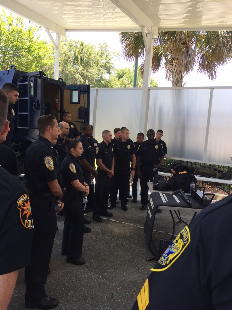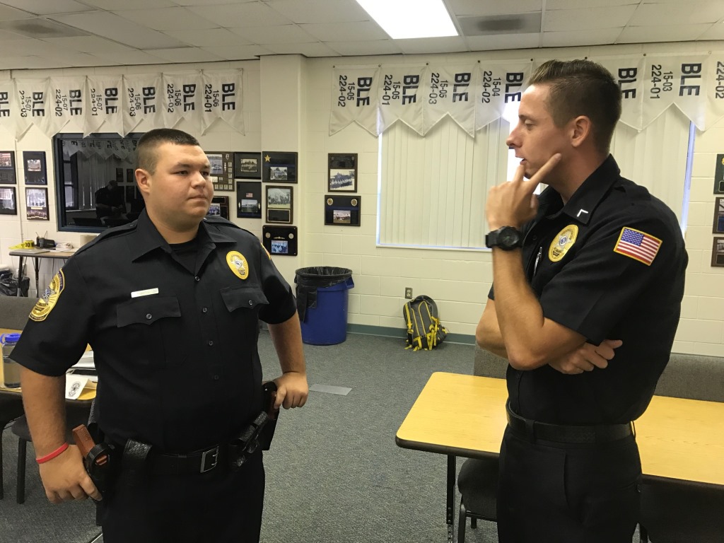 On Tuesday, the class took a tour of the Leesburg Police Department, where they were introduced to many different department members. The officers went over numerous special units, including K-9, S.W.A.T., Motor Unit, Patrol, and CID. The class also got to experience some the tools and equipment used by the officers. Tuesday afternoon, the students were honored to be asked to witness the Lake County Officer Memorial ceremony, honoring the brave individuals who sacrificed so much for their community. Recruiters from Tavares Police Department came to the classroom to speak to the students about joining the TPD team.