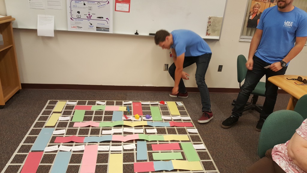 Adult Basic Education – Students in Kathy Roberts’ and Kathy Girard’s classroom practiced math using a giant board game on the floor.
