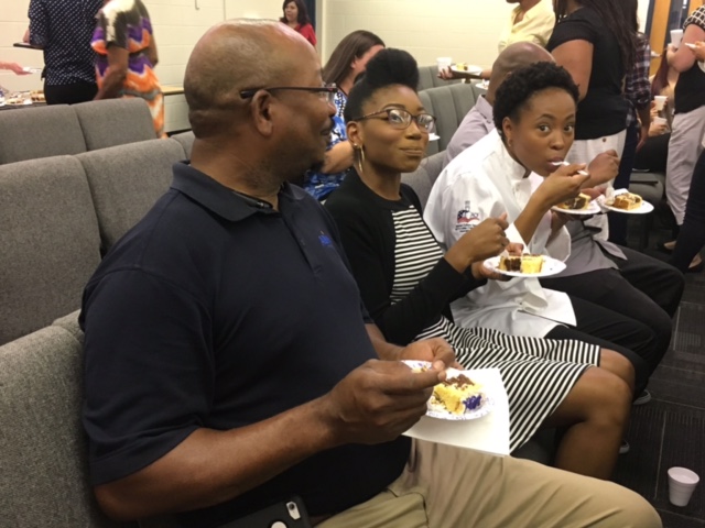 ESOL – One of the many ways students learn English is through singing. Marvina Hooper would lead her class in several songs each week. Her favorite was the “Itsy Bitsy Teeny Weeny Yellow Polka Dot Bikini.” On her last day before her retirement, Mrs. Hooper led the class in singing it one more time – in costume!