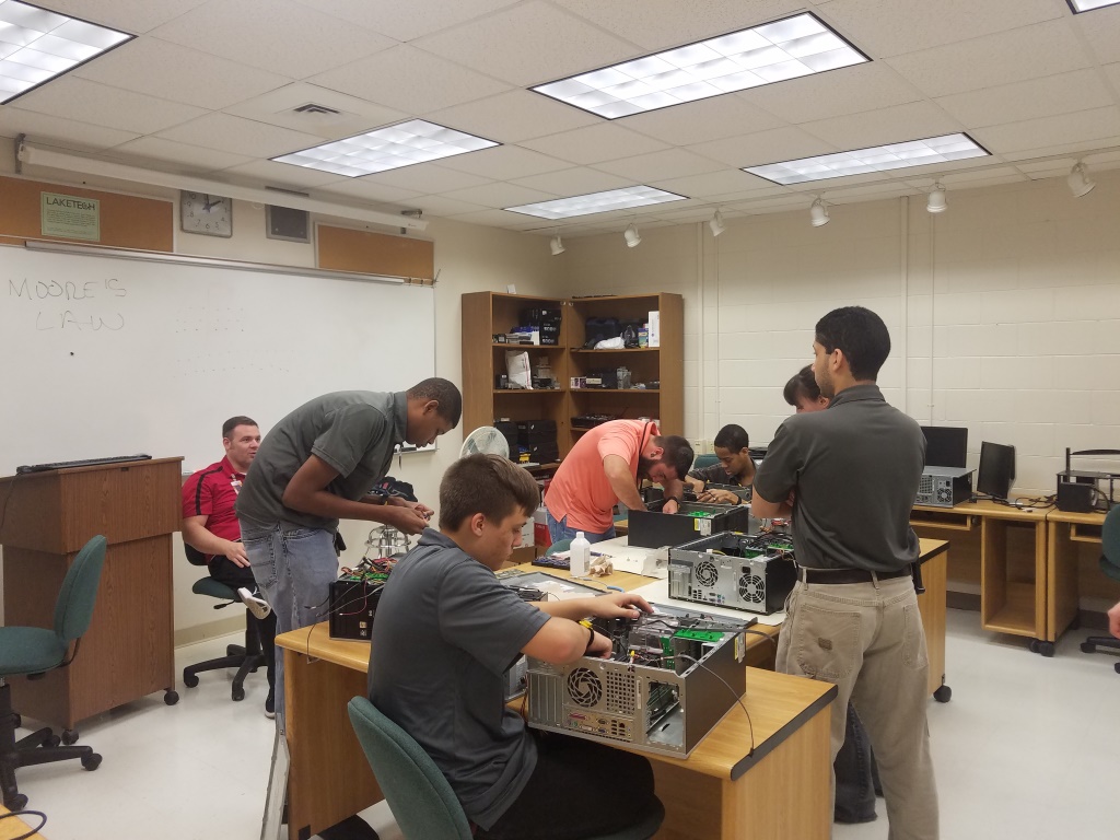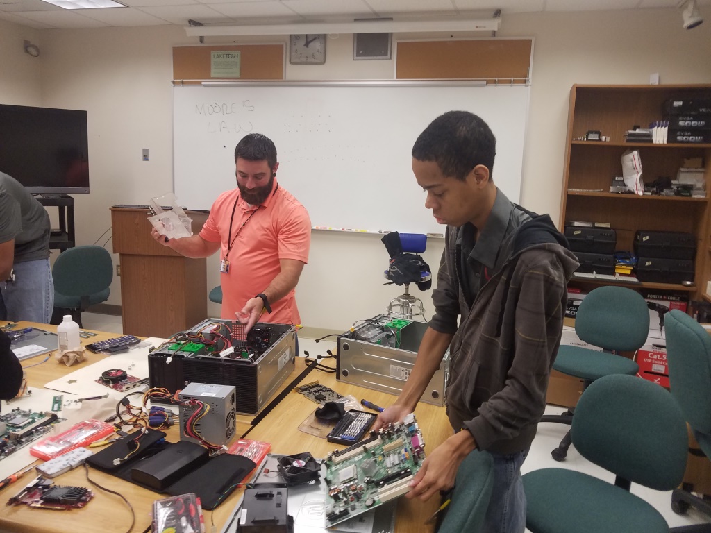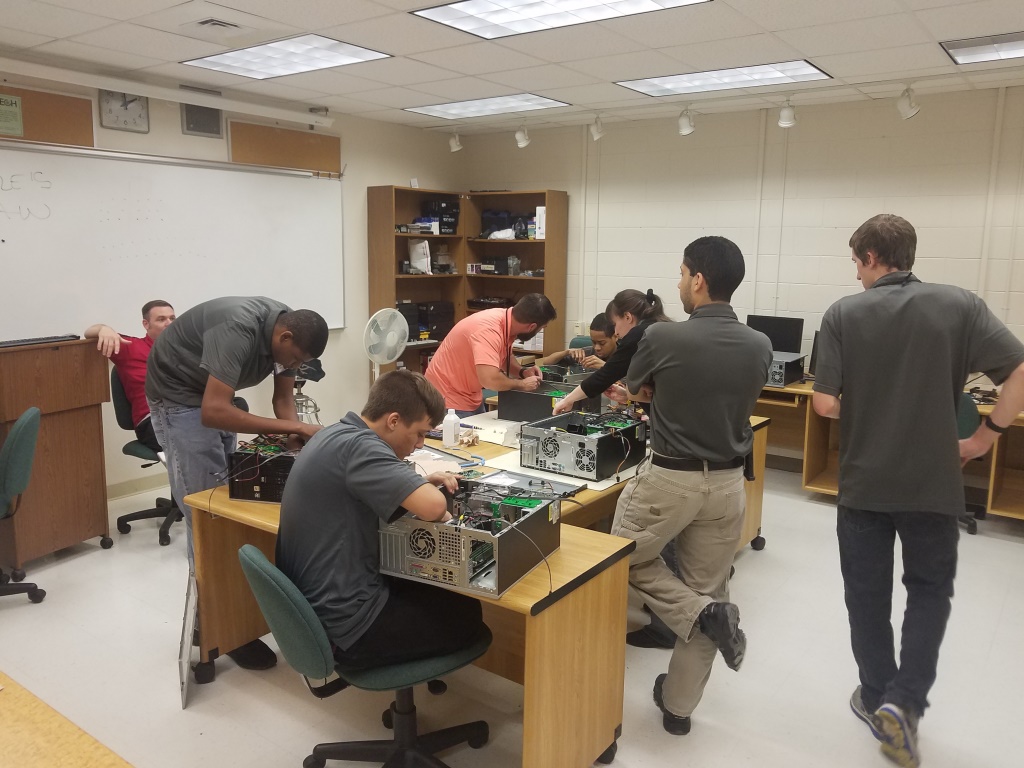 The advanced students mentor the new students and take pride in their work. Students are mentored by advanced students. These students have earned their CompTIA A+ certified technician industry certification.