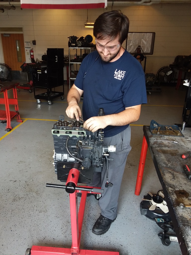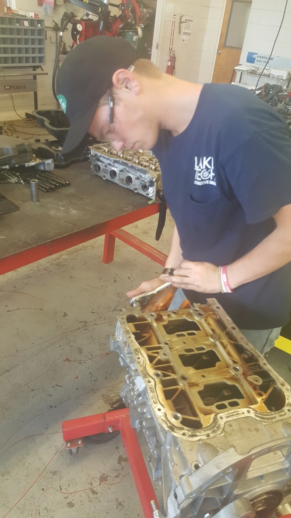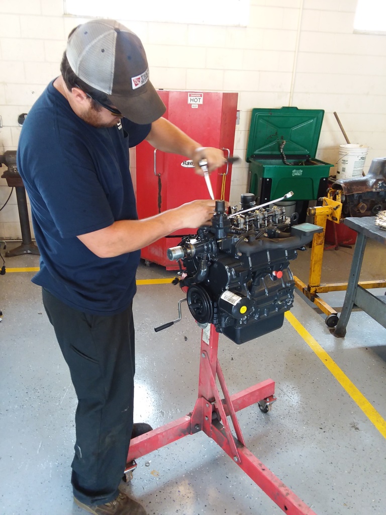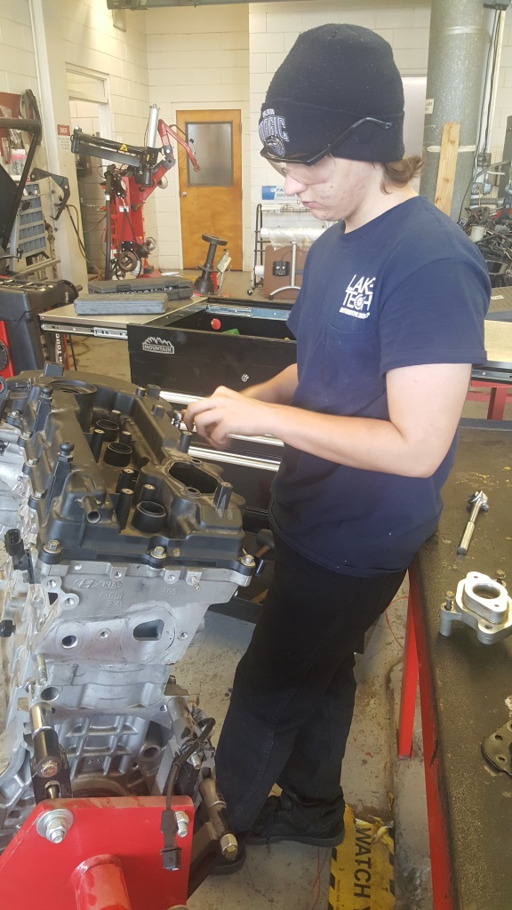 Automotive Service Technology – Students have been busy working on engine tear downs, from a small one cylinder engine to a four cylinder engine. In the process, they learn the different parts and pieces that make an engine, the names of those parts, and become familiar with hand tools and their proper use. The pictures show the students putting their skills to work.