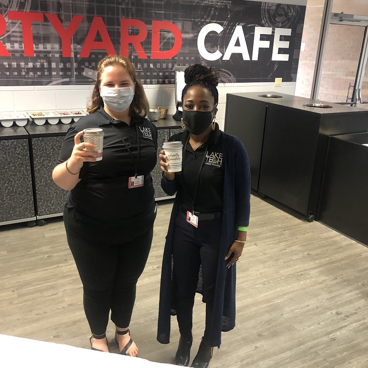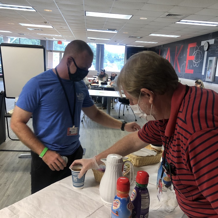It was National Coffee Day on Tuesday, September 29 so of course, we had to celebrate and offer free coffee and many different creamers to our students. Kim Frazier and Art Seidner served and the students enjoyed!