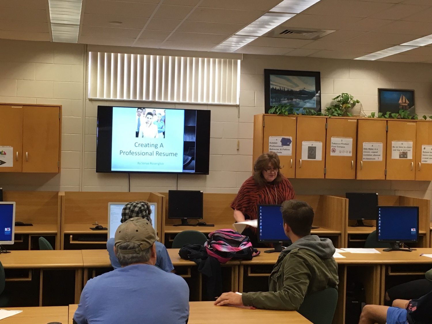 Mrs. Rosenglick showed them that the volunteer and babysitting skills can count for experience. She showed us how to use those action verbs and how to format the resume to make it look professional and stand out to employers.