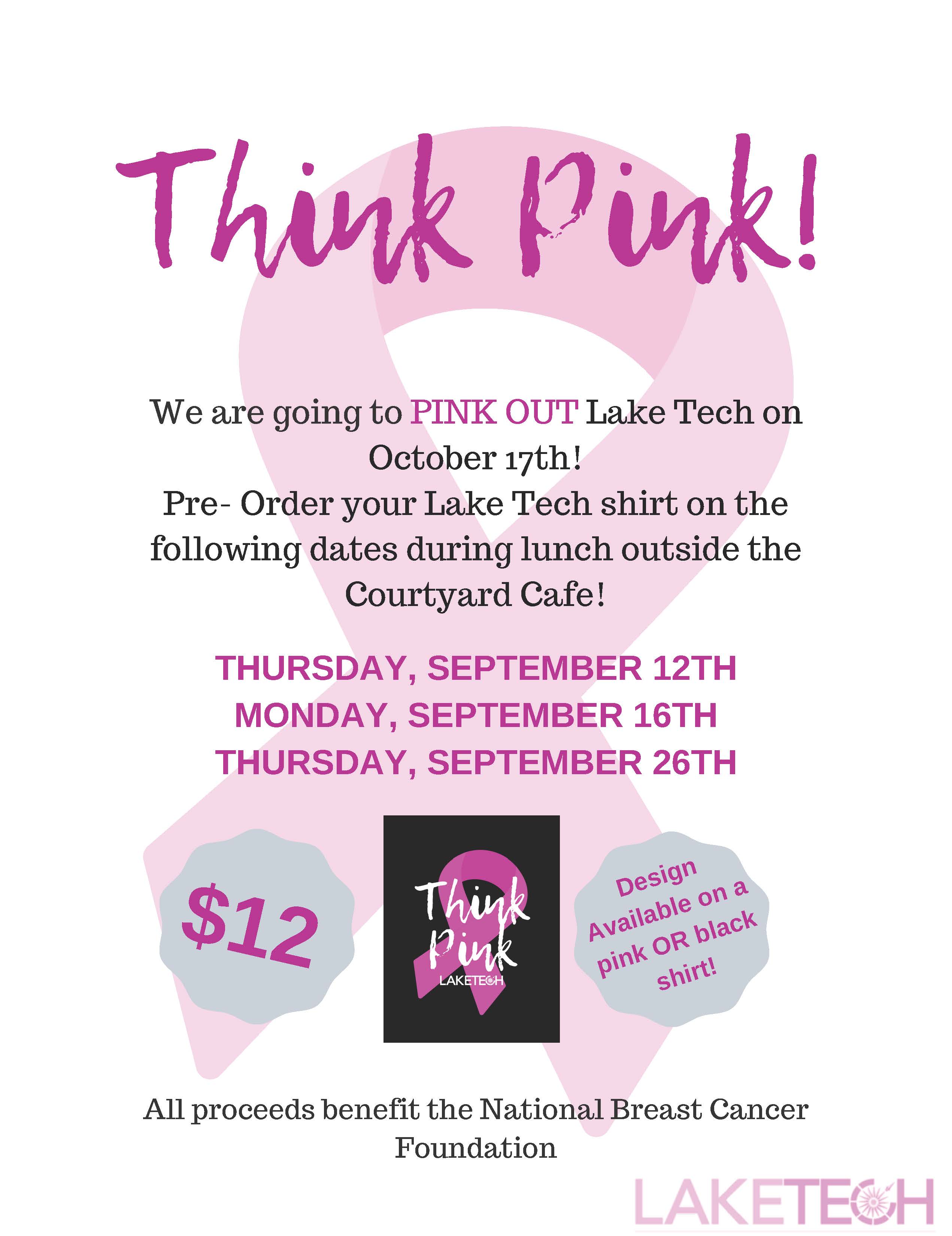 “Pink Out” Shirts are on sale now in preparation for Breast Cancer Awareness Day in October.